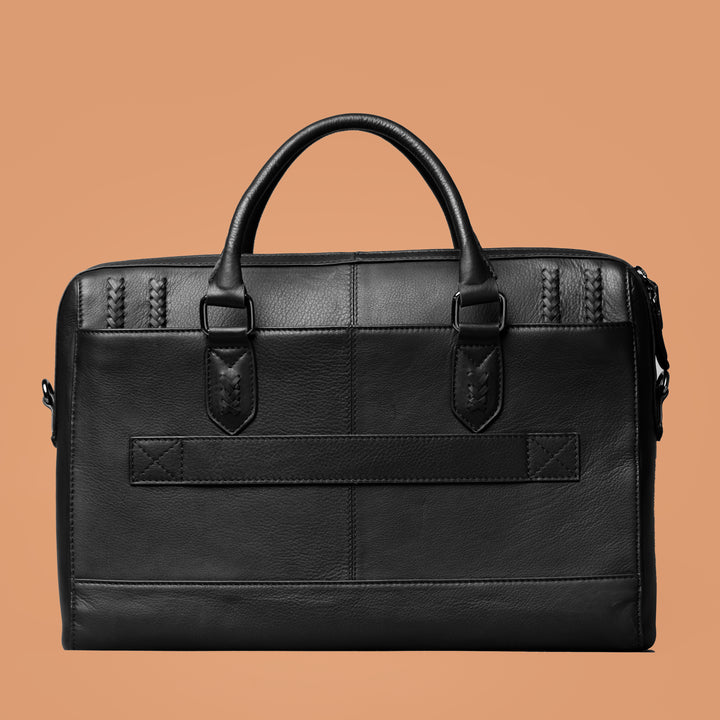“Crafted with precision and style, the Braided Laptop Bag combines durability with elegance. Designed for the modern professional, it features a braided leather exterior that exudes sophistication. With ample space for your laptop and essentials, it blends functionality seamlessly with classic craftsmanship. Elevate your daily commute or business travel with this timeless accessory.”