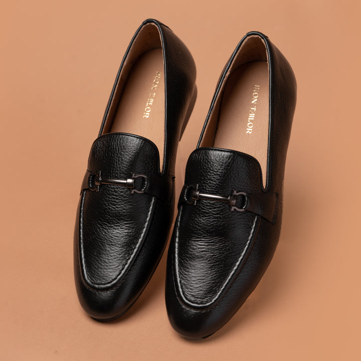 Premium Black Leather Product: The body of the shoe is crafted from high-quality genuine leather product in matte black.