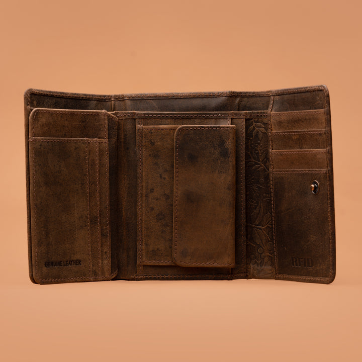 • TRENDY & STYLISH WALLET FOR WOMEN –The Unique flower printed on the Leather here makes this wallet stand out of everything you have seen before! This stylish wallet ensures that you carry all your essentials and step out in style. It can be easily held in your hand as a clutch or be placed in your daily handbag.