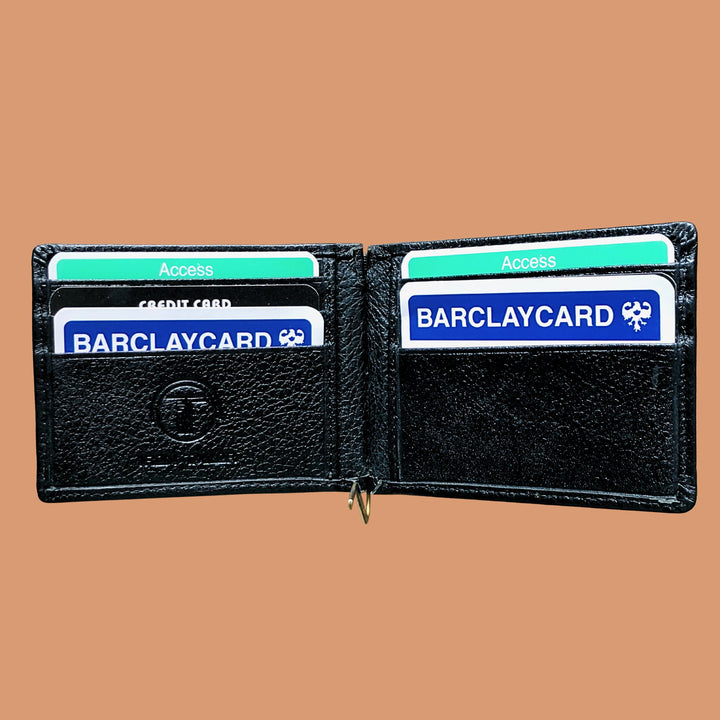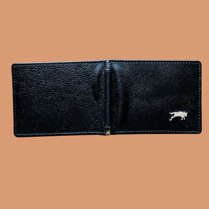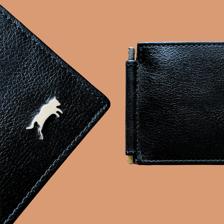 - The most unique feature of this wallet is the metallic Money Clip to hold your currency notes and slots For Cards. This gives the wallet a very new age look and makes it extremely Slim ,Stylish and Practical at the same time.