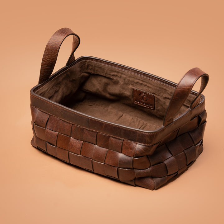 - MATERIAL & CARE : Genuine Leather Basket/Cheque design basket. Easy to maintain as it can be cleaned gently using a damp cloth.