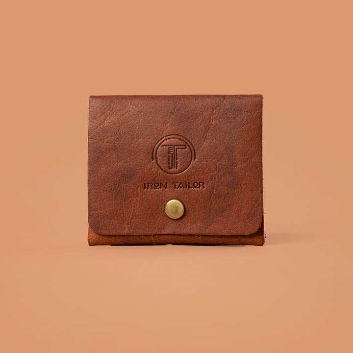 An accessory that makes you stand out from the crowd ,SINGLE BUTTON card holder made with genuine leather.also inside pocket for cash.