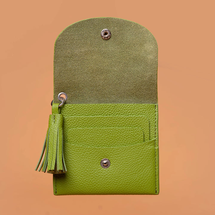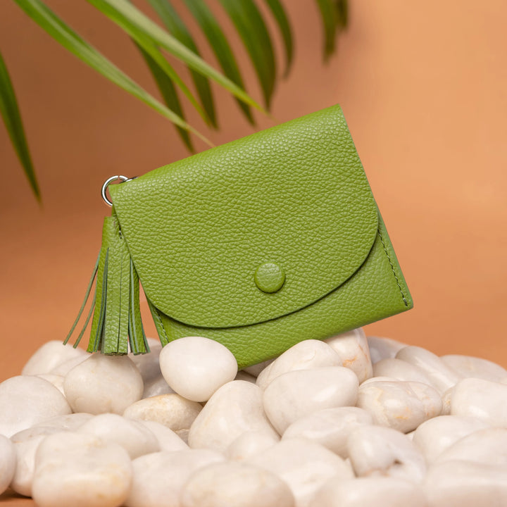 Introducing the Tassel Touch Mini Green by Iron Tailor—the perfect blend of style and practicality! This compact wallet, featuring a vibrant green pebbled texture and a playful tassel charm, is designed to fit your essentials without the bulk. Slip it into your smallest bag or even your pocket. Secure snap closure keeps your cards and cash safe.