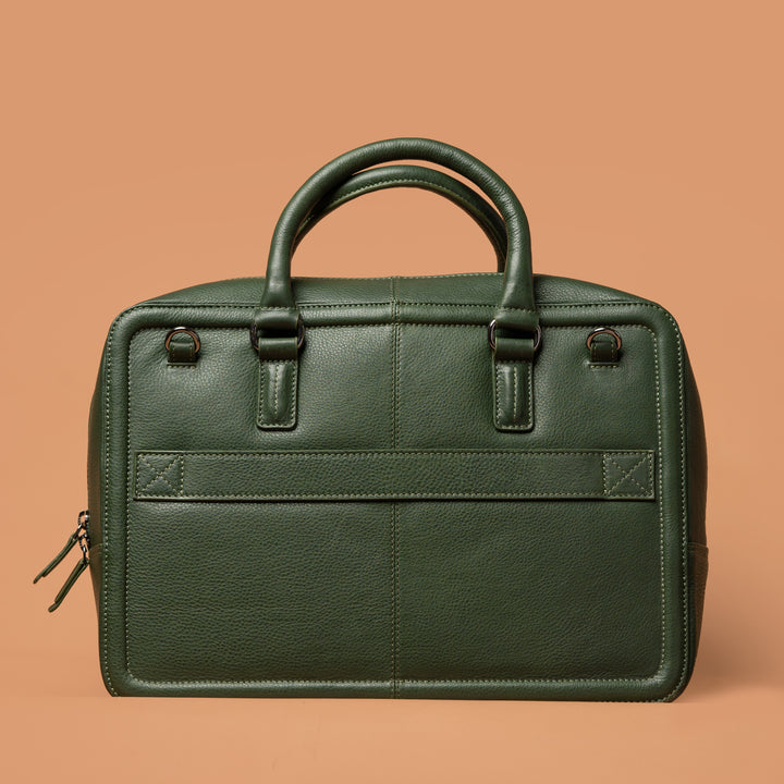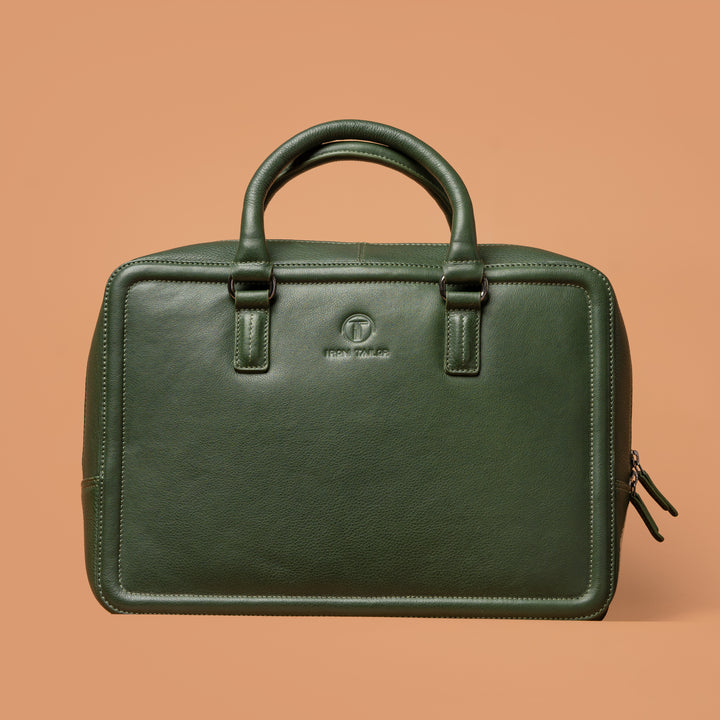 Experience the perfect blend of refined aesthetics and durable craftsmanship with the IRON TAILOR Signature Leather Briefcase in an elegant deep green finish. Meticulously constructed from top-quality genuine full-grain leather, this briefcase is designed to complement your professionalism with timeless style