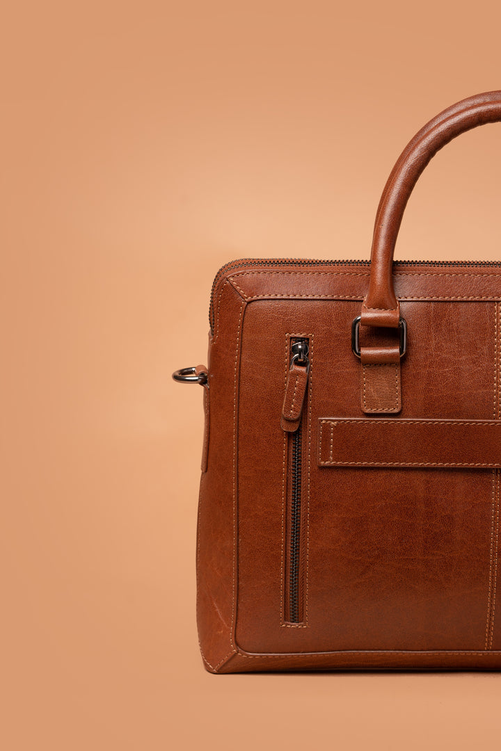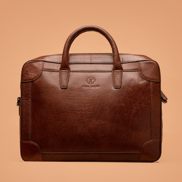 Elevate your professional style with the IRON TAILOR Classic Leather Briefcase, a hallmark of elegance and functionality. Crafted from premium full-grain leather, this briefcase exudes timeless charm with a rich, warm tan finish that matures beautifully with age.