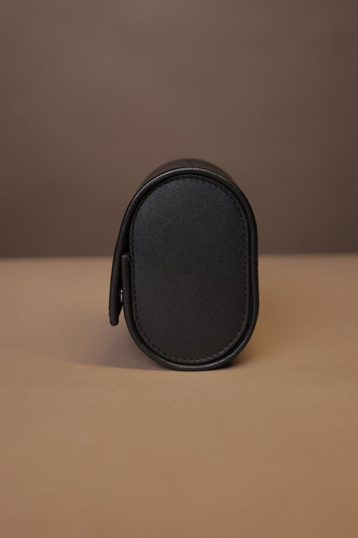 The image shows a Timevault Watch Case Combo featuring a stylish and protective watch case. The case is cylindrical with a black faux crocodile leather exterior and a soft, patterned interior designed to securely hold and display a wristwatch. The combo appears to include: